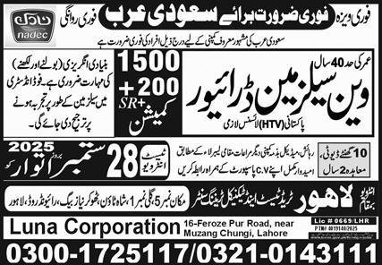 Van Salesman Driver Jobs In Saudi Arabia announce the Contract career opportunities for the post of See Below Ad in Saudi Arabia for the fresh and experienced candidates on Contract basis who have Check Advertisement degree. Posted date of this post is 21/09/2025 and the last date is 28/09/2025. if you are eligible for this job apply before due date.