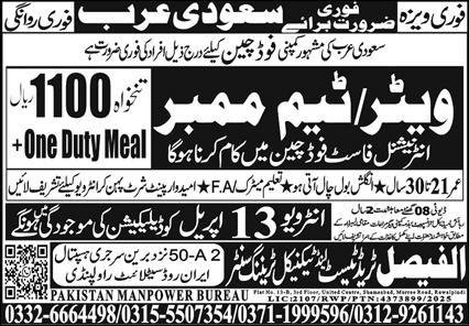 Waiter & Team Member Jobs 2026 In Saudi Arabia announce the Contract career opportunities for the post of See Below Ad in Saudi Arabia for the fresh and experienced candidates on Contract basis who have Check Advertisement degree. Posted date of this post is 09/04/2026 and the last date is 13/04/2026. if you are eligible for this job apply before due date.