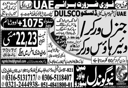 Warehouse Worker general worker Jobs in UAE 2023 announce the Contract career opportunities for the post of See Below Ad in United Arab Emirates for the fresh and experienced candidates on Contract basis who have Check Advertisement degree. Posted date of this post is 22/05/2023 and the last date is 23/05/2023. if you are eligible for this job apply before due date.