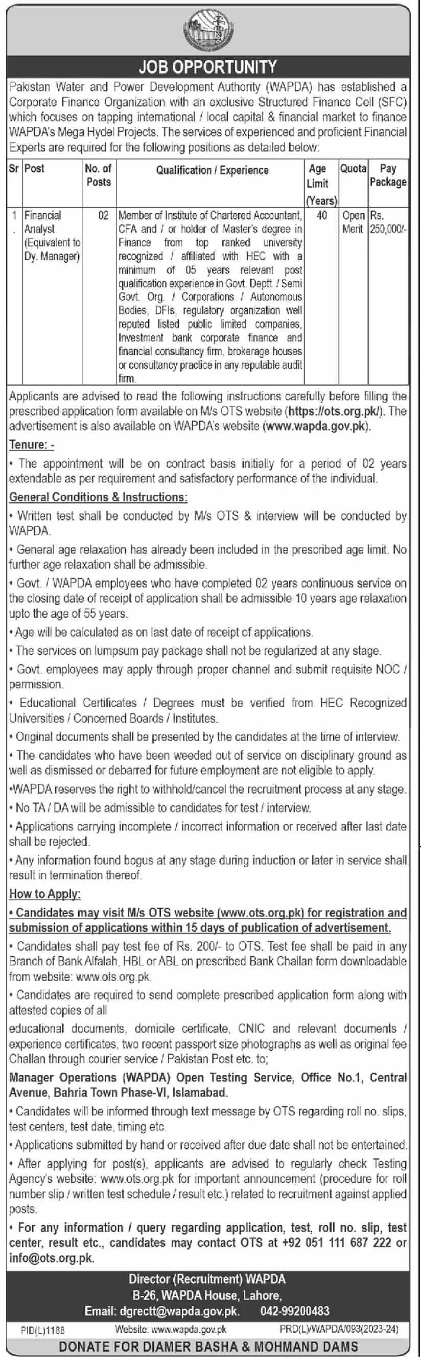 Water & Power Development Authority WAPDA Lahore Jobs 2023 announce the Contract career opportunities for the post of See Below Ad in Punjab, Lahore for the fresh and experienced candidates on Contract basis who have Check Advertisement degree. Posted date of this post is 14/10/2023 and the last date is 29/10/2023. if you are eligible for this job apply before due date.