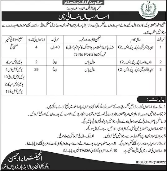 Water Power Division Gilgit Baltistan Jobs 2022 announce the Contract career opportunities for the post of See Below Ad in Gilgit Baltistan, Astore for the fresh and experienced candidates on Contract basis who have Check Advertisement degree. Posted date of this post is 12/04/2022 and the last date is 27/04/2022. if you are eligible for this job apply before due date.