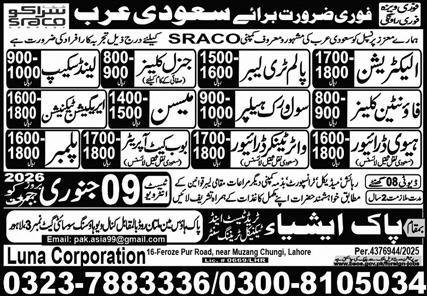Water Tanker Driver & Palm Tree Labor Jobs 2026 announce the Contract career opportunities for the post of See Below Ad in Saudi Arabia for the fresh and experienced candidates on Contract basis who have Check Advertisement degree. Posted date of this post is 31/12/2025 and the last date is 09/01/2026. if you are eligible for this job apply before due date.