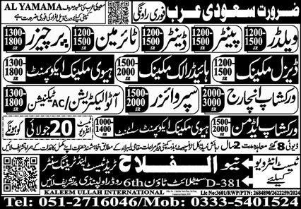 Welder and tyre Man Jobs in Saudia Arabia 2024 announce the Contract career opportunities for the post of See Below Ad in Saudi Arabia for the fresh and experienced candidates on Contract basis who have Check Advertisement degree. Posted date of this post is 14/07/2024 and the last date is 20/07/2024. if you are eligible for this job apply before due date.
