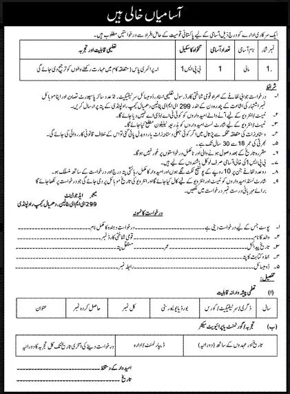 299 EME Battalion Dhamial Camp Rawalpindi Jobs announce the Contract career opportunities for the post of See Below Ad in Punjab, Rawalpindi for the fresh and experienced candidates on Contract basis who have Check Advertisement degree. Posted date of this post is 10/09/2022 and the last date is 25/09/2022. if you are eligible for this job apply before due date.