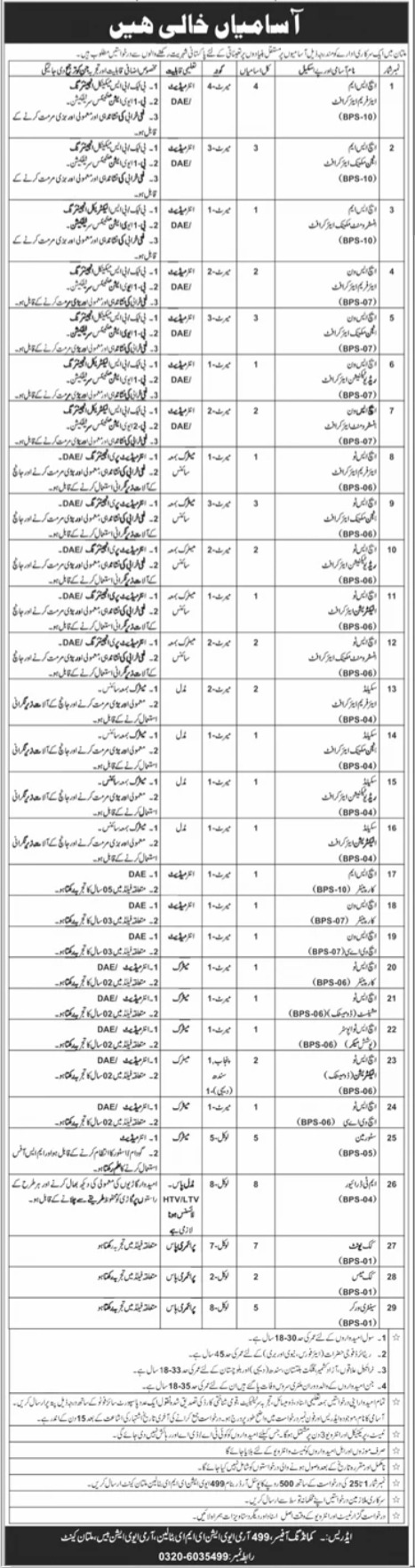 Engineering & Technical (Posts 1-13): Roles like Sub-Engineer, Chargehand, and Supervisor (BPS-04 to BPS-10) in fields such as Civil, Electrical, Mechanical, and Electronics. Most require a DAE (Diploma of Associate Engineering) in the relevant field and related experience.