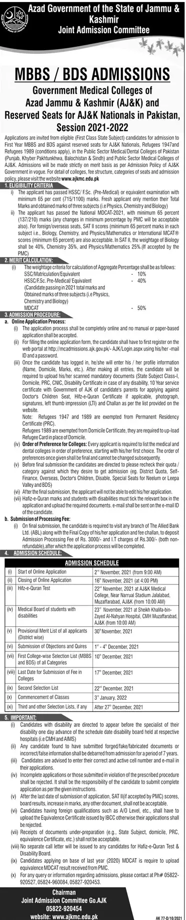 Admission in Government Medical College Azad Kashmir announce the Contract career opportunities for the post of See Below Ad in Azad Jammu Kashmir,Federal for the fresh and experienced candidates on Contract basis who have Check Advertisement degree. Posted date of this post is 27/10/2021 and the last date is 16/11/2021. if you are eligible for this job apply before due date.