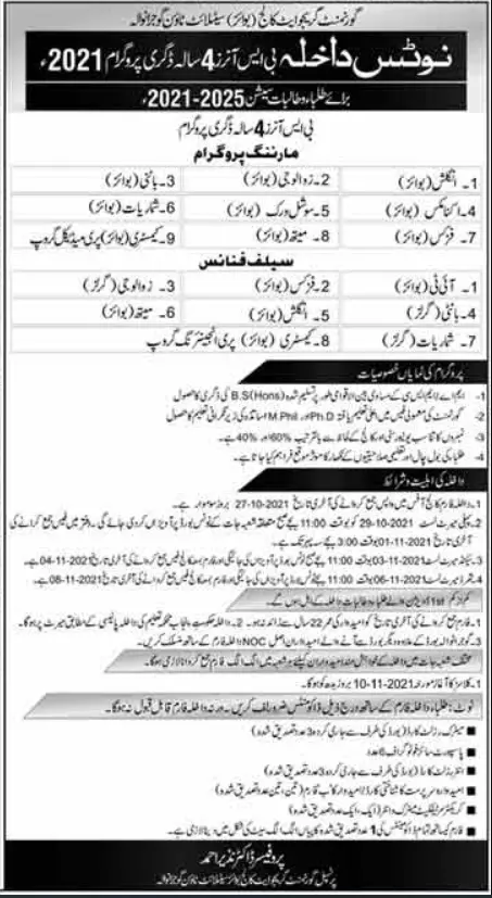 Admission In Govt Graduate Boys College Gujranwala