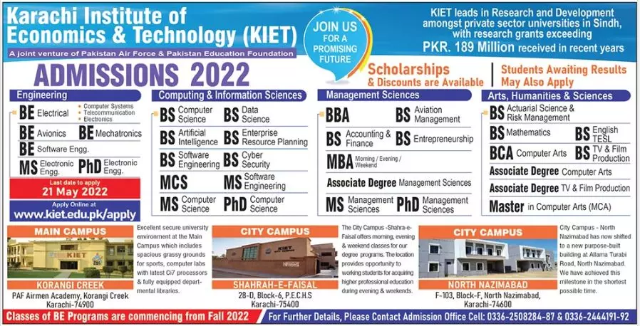 Admission In Karachi Institute of Economics and Technology announce the Contract career opportunities for the post of See Below Ad in Sindh, Karachi for the fresh and experienced candidates on Contract basis who have Check Advertisement degree. Posted date of this post is 15/05/2022 and the last date is 21/05/2022. if you are eligible for this job apply before due date.
