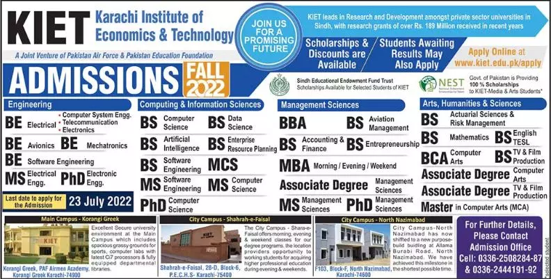 Admission in Karachi Institute of Economics and Technology announce the Contract career opportunities for the post of See Below Ad in Sindh, Karachi for the fresh and experienced candidates on Contract basis who have Check Advertisement degree. Posted date of this post is 26/06/2022 and the last date is 23/07/2022. if you are eligible for this job apply before due date.