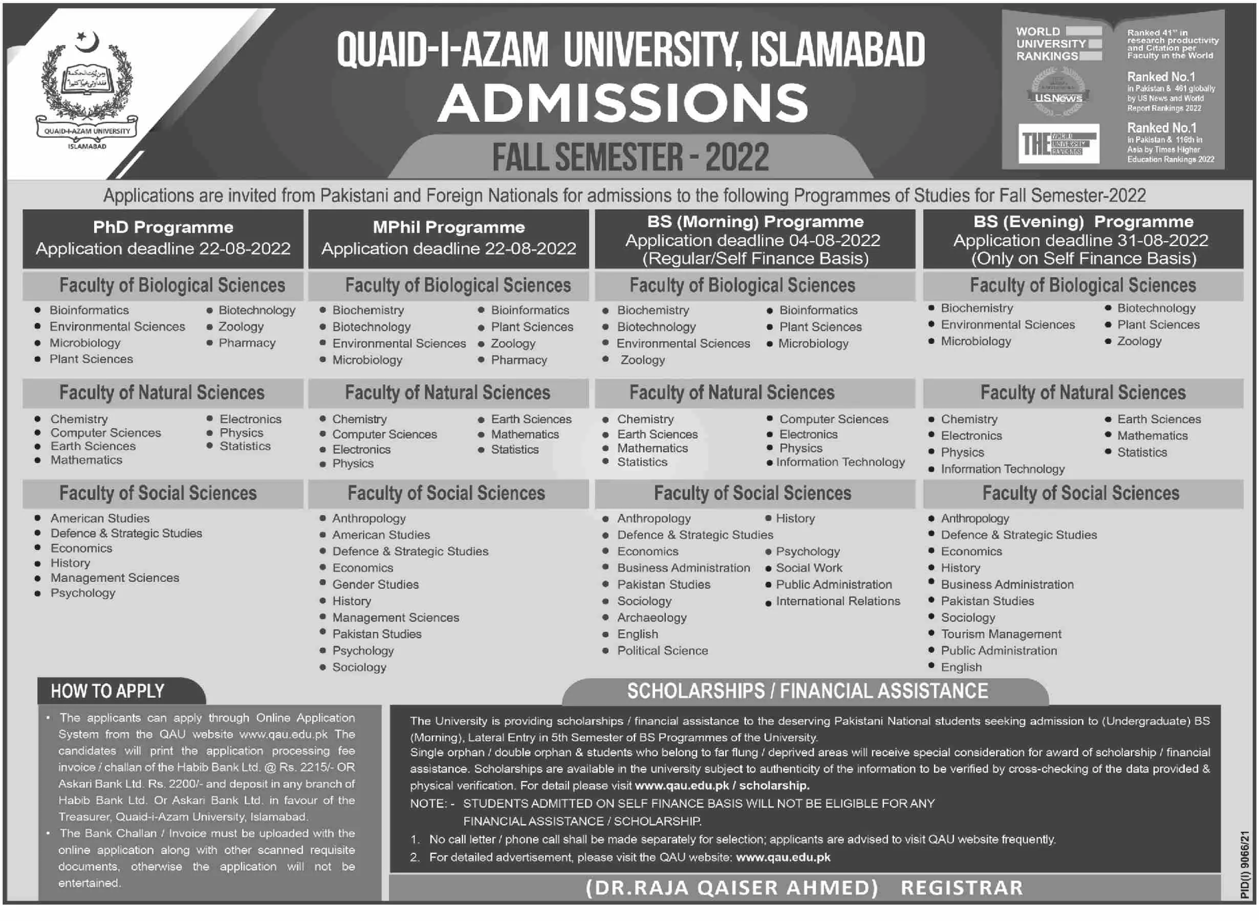 Admission in Quaid-I-Azam University Islamabad announce the Contract career opportunities for the post of See Below Ad in Federal, Islamabad for the fresh and experienced candidates on Contract basis who have Check Advertisement degree. Posted date of this post is 29/06/2022 and the last date is 04/08/2022. if you are eligible for this job apply before due date.