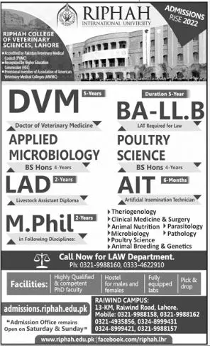 Admission in Riphah international University announce the Contract career opportunities for the post of See Below Ad in Punjab, Lahore for the fresh and experienced candidates on Contract basis who have Check Advertisement degree. Posted date of this post is 17/07/2022 and the last date is 06/08/2022. if you are eligible for this job apply before due date.
