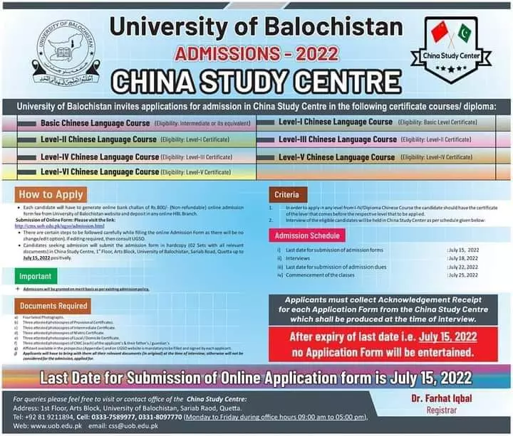 Admission in University of Balochistan announce the Contract career opportunities for the post of See Below Ad in Balochistan, Quetta for the fresh and experienced candidates on Contract basis who have Check Advertisement degree. Posted date of this post is 20/06/2022 and the last date is 15/06/2022. if you are eligible for this job apply before due date.