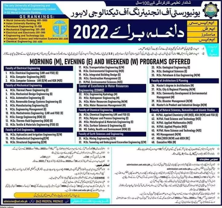 For more details please visit our admission portal https,;//admission.uet.edu.pk.