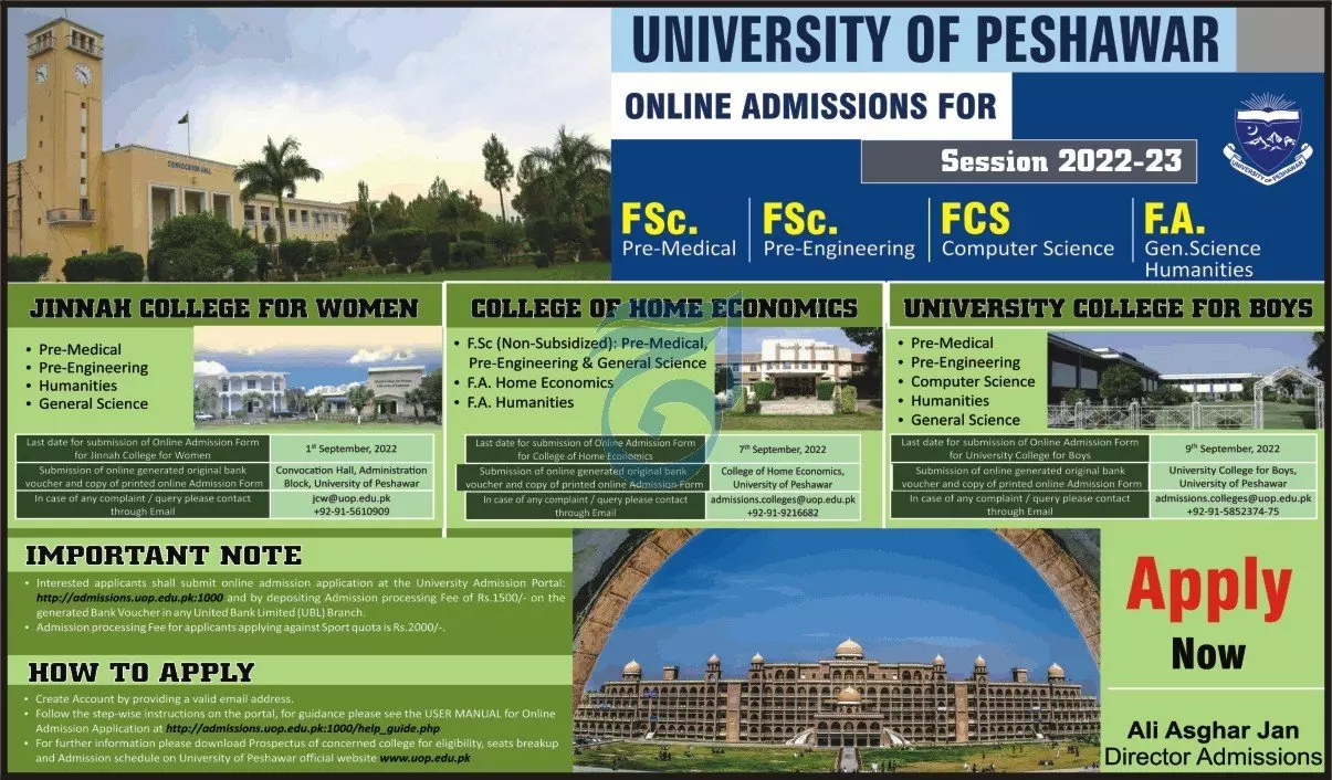 Admission in University of Peshawar announce the Contract career opportunities for the post of See Below Ad in Khyber Pakhtunkhwa, Peshawar for the fresh and experienced candidates on Contract basis who have Check Advertisement degree. Posted date of this post is 20/08/2022 and the last date is 01/09/2022. if you are eligible for this job apply before due date.