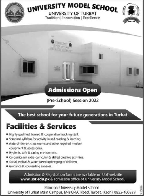 Admission In University of Turbat announce the Contract career opportunities for the post of See Below Ad in Balochistan, Turbat for the fresh and experienced candidates on Contract basis who have Check Advertisement degree. Posted date of this post is 26/03/2022 and the last date is 21/04/2022. if you are eligible for this job apply before due date.