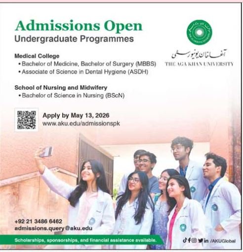 Aga Khan University announce the latest Admission in different programs, details are mentioned in See Below Ad . Students from Sindh, Karachi and other provinces of Pakistan, can apply for the Admission. Students awaiting for the Admissions in Aga Khan University can apply according the given criteria which is mentioned in the advertisement. Students awaiting results may also apply. Advertisement date is 08/03/2026 and the last date of the admission is 13/03/2026