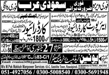 Airport Car Driver & Food Delivery Driver Jobs 2026 announce the Contract career opportunities for the post of See Below Ad in Saudi Arabia for the fresh and experienced candidates on Contract basis who have Check Advertisement degree. Posted date of this post is 22/01/2026 and the last date is 27/01/2026. if you are eligible for this job apply before due date.