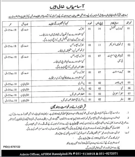 - Armed Forces Institute of Rehabilitation Medicine AFIRM invites applications for job positions advertised in daily Jang dated 7 May 2023 for following vacancies in Rawalpindi, rawalpindi Punjab Pakistan.