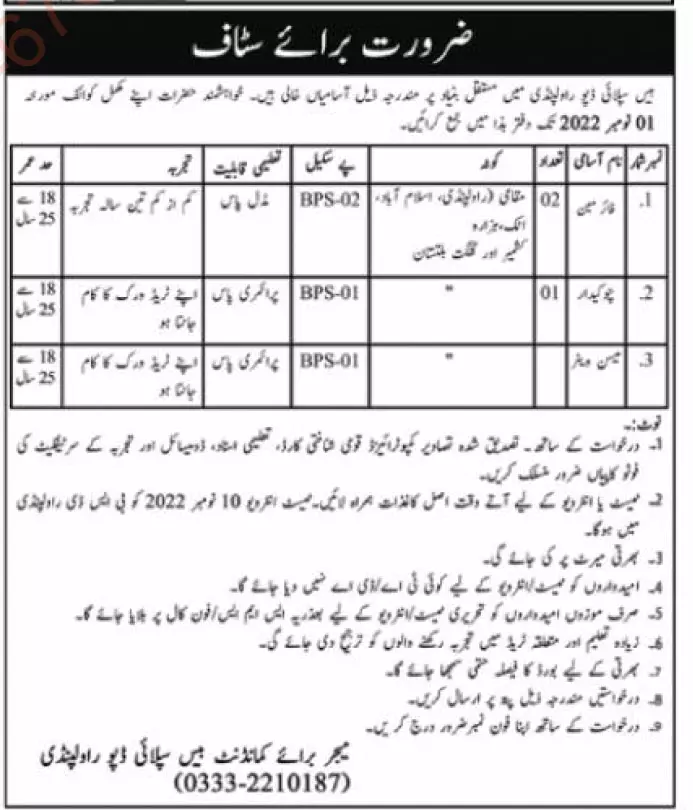 - Candidates applying for these posts should be aged between 18 to 25 years. Suitable applicants can forward applications before 1st November 2022 to the Major for Commandant, Base Supply Depot, Rawalpindi.