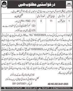 Balochistan Textbook Board Quetta Jobs 2023 announce the Contract career opportunities for the post of See Below Ad in Balochistan, Quetta for the fresh and experienced candidates on Contract basis who have Check Advertisement degree. Posted date of this post is 25/01/2023 and the last date is 10/02/2023. if you are eligible for this job apply before due date.