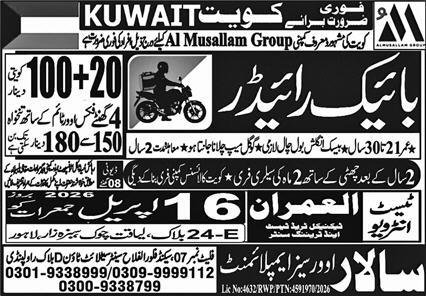 Bike Rider Jobs in Kuwait 2026 announce the Contract career opportunities for the post of See Below Ad in Kuwait for the fresh and experienced candidates on Contract basis who have Check Advertisement degree. Posted date of this post is 14/04/2026 and the last date is 16/04/2026. if you are eligible for this job apply before due date.