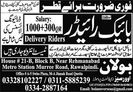 Bike Rider Jobs In Qatar 2023 announce the Contract career opportunities for the post of See Below Ad in Qatar for the fresh and experienced candidates on Contract basis who have Check Advertisement degree. Posted date of this post is 11/08/2023 and the last date is 11/09/2023. if you are eligible for this job apply before due date.