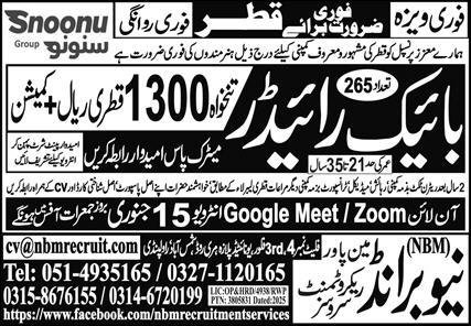Bike Rider Jobs in Qatar 2026 announce the Contract career opportunities for the post of See Below Ad in Qatar for the fresh and experienced candidates on Contract basis who have Check Advertisement degree. Posted date of this post is 11/01/2026 and the last date is 15/01/2026. if you are eligible for this job apply before due date.