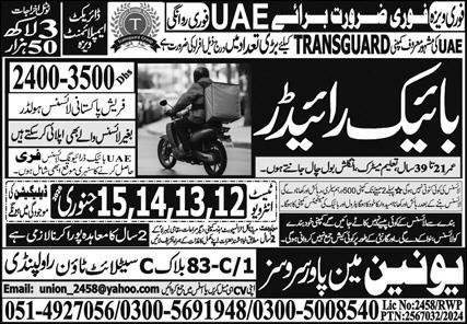 Bike Rider Jobs In United Arab Emerities Uae 2026 announce the Contract career opportunities for the post of See Below Ad in United Arab Emirates for the fresh and experienced candidates on Contract basis who have Check Advertisement degree. Posted date of this post is 11/01/2026 and the last date is 15/01/2026. if you are eligible for this job apply before due date.