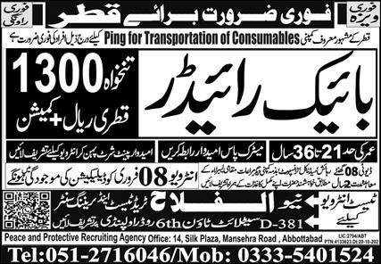 Bike Rider Jobs Open In Qatar 2026 announce the Contract career opportunities for the post of See Below Ad in Qatar for the fresh and experienced candidates on Contract basis who have Check Advertisement degree. Posted date of this post is 07/02/2026 and the last date is 08/02/2026. if you are eligible for this job apply before due date.