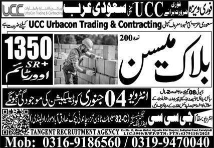 Block Mason Jobs in Saudia Arabia 2026 announce the Contract career opportunities for the post of See Below Ad in Saudi Arabia for the fresh and experienced candidates on Contract basis who have Check Advertisement degree. Posted date of this post is 03/01/2026 and the last date is 04/01/2026. if you are eligible for this job apply before due date.