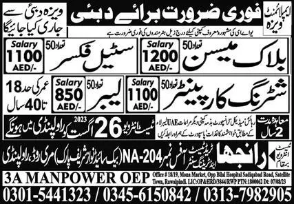 Block Mason & Labor Jobs 2023 In Dubai announce the Contract career opportunities for the post of See Below Ad in Dubai for the fresh and experienced candidates on Contract basis who have Check Advertisement degree. Posted date of this post is 21/08/2023 and the last date is 26/08/2023. if you are eligible for this job apply before due date.