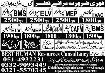 BMS operator And Mep Supervizor Jobs in Qatar 2024 announce the Contract career opportunities for the post of See Below Ad in Qatar for the fresh and experienced candidates on Contract basis who have Check Advertisement degree. Posted date of this post is 12/02/2024 and the last date is 13/02/2024. if you are eligible for this job apply before due date.