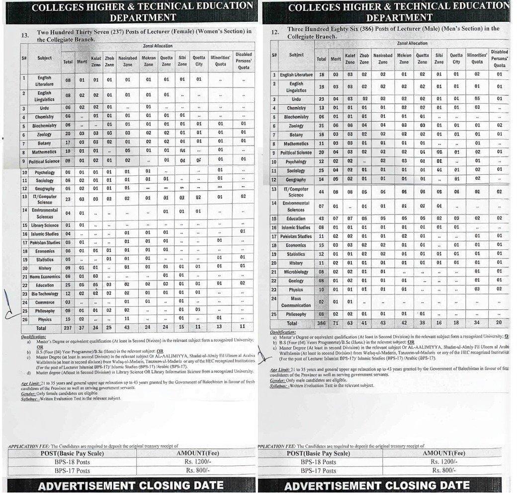 BPSC Lecturer Jobs 2026 – Male Female announce the Permanent career opportunities for the post of See Below Ad in Balochistan, Quetta for the fresh and experienced candidates on Permanent basis who have Check Advertisement degree. Posted date of this post is 03/01/2026 and the last date is 09/02/2026. if you are eligible for this job apply before due date.
