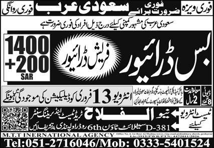 Bus Driver Jobs in Saudia Arabia 2026 announce the Contract career opportunities for the post of See Below Ad in Saudi Arabia for the fresh and experienced candidates on Contract basis who have Check Advertisement degree. Posted date of this post is 10/02/2026 and the last date is 13/02/2026. if you are eligible for this job apply before due date.