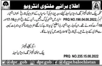cancellation of interview public Health Engineering Lasbela announce the Contract career opportunities for the post of See Below Ad in Balochistan for the fresh and experienced candidates on Contract basis who have Check Advertisement degree. Posted date of this post is 16/08/2022 and the last date is 16/08/2022. if you are eligible for this job apply before due date.