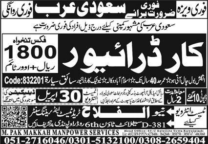 Car Driver Jobs Open In Saudi Arabia 2026 announce the Contract career opportunities for the post of See Below Ad in Saudi Arabia for the fresh and experienced candidates on Contract basis who have Check Advertisement degree. Posted date of this post is 22/04/2026 and the last date is 30/04/2026. if you are eligible for this job apply before due date.