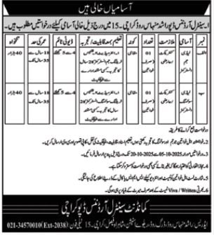 Applications are invited for the following vacant positions at Central Ordnance Depot, Rashid Minhas Road, Karachi-15.