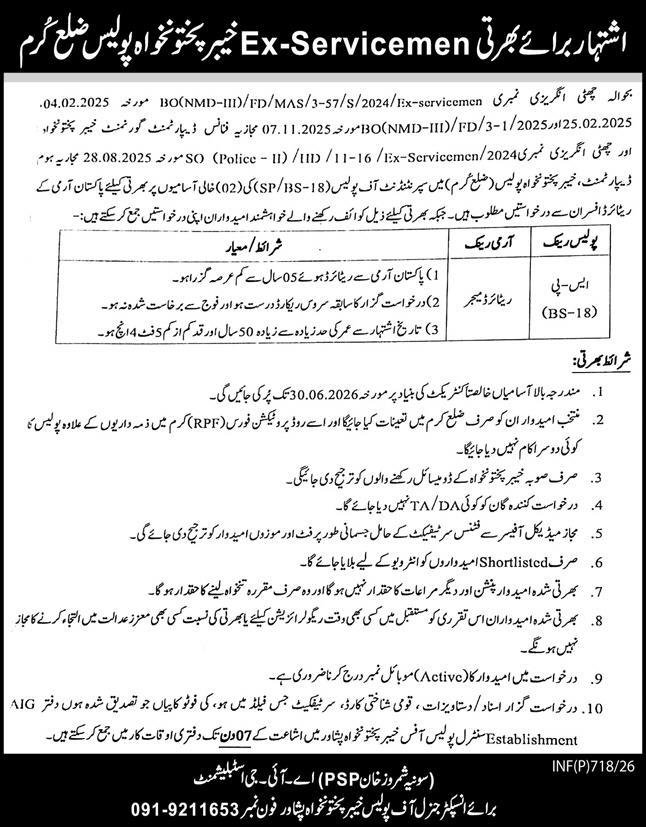 Central Police Office Khyber Pakhtunkhwa Jobs 2026 announce the Contract career opportunities for the post of See Below Ad in Khyber Pakhtunkhwa, Peshawar for the fresh and experienced candidates on Contract basis who have Check Advertisement degree. Posted date of this post is 19/02/2026 and the last date is 26/02/2026. if you are eligible for this job apply before due date.