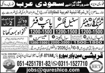 Civil Engineer & Dump Truck Driver Jobs 2026 In Saudi Arabia announce the Contract career opportunities for the post of See Below Ad in Saudi Arabia for the fresh and experienced candidates on Contract basis who have Check Advertisement degree. Posted date of this post is 06/02/2026 and the last date is 07/02/2026. if you are eligible for this job apply before due date.