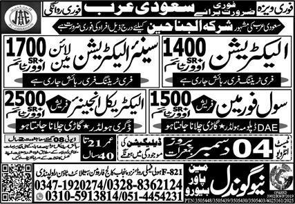 Civil Forman And Senior Electrician Jobs in Saudia Arabia announce the Contract career opportunities for the post of See Below Ad in Saudi Arabia for the fresh and experienced candidates on Contract basis who have Check Advertisement degree. Posted date of this post is 03/12/2025 and the last date is 04/12/2025. if you are eligible for this job apply before due date.