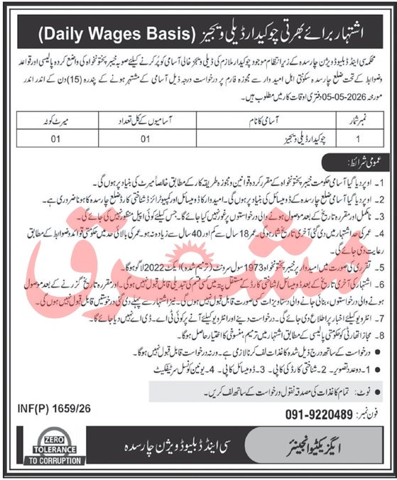 Communication and Works Department Charsadda Jobs 2026 announce the Contract career opportunities for the post of See Below Ad in Khyber Pakhtunkhwa, Charsadda for the fresh and experienced candidates on Contract basis who have Check Advertisement degree. Posted date of this post is 18/04/2026 and the last date is 03/05/2026. if you are eligible for this job apply before due date.