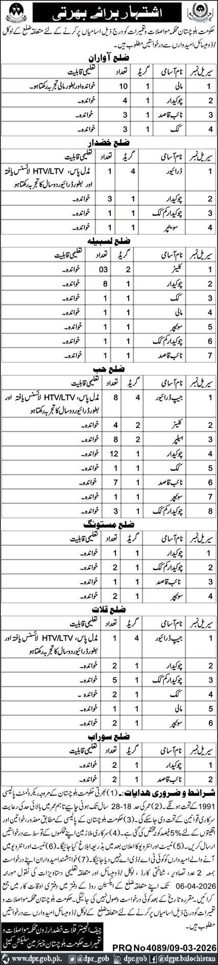 Communication & Works Department Balochistan Jobs 2026 announce the Contract career opportunities for the post of See Below Ad in Balochistan, Quetta for the fresh and experienced candidates on Contract basis who have Check Advertisement degree. Posted date of this post is 10/03/2026 and the last date is 26/03/2026. if you are eligible for this job apply before due date.