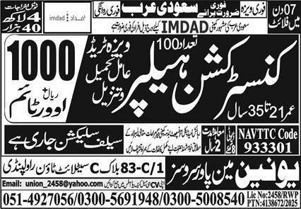 Construction Helper Jobs in Saudia Arabia 2025 announce the Contract career opportunities for the post of See Below Ad in Saudi Arabia for the fresh and experienced candidates on Contract basis who have Check Advertisement degree. Posted date of this post is 04/12/2025 and the last date is 12/12/2025. if you are eligible for this job apply before due date.