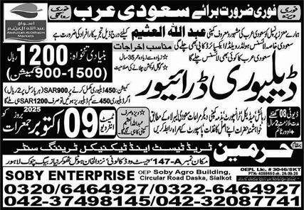 Delivery Driver Jobs in Saudia Arabia 2025 announce the Contract career opportunities for the post of See Below Ad in Saudi Arabia for the fresh and experienced candidates on Contract basis who have Check Advertisement degree. Posted date of this post is 08/10/2025 and the last date is 09/10/2025. if you are eligible for this job apply before due date.