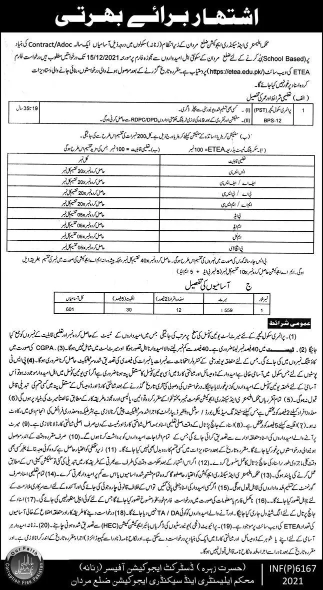 Elementry And Secondary Education khyber Pakhtunkhwa Jobs