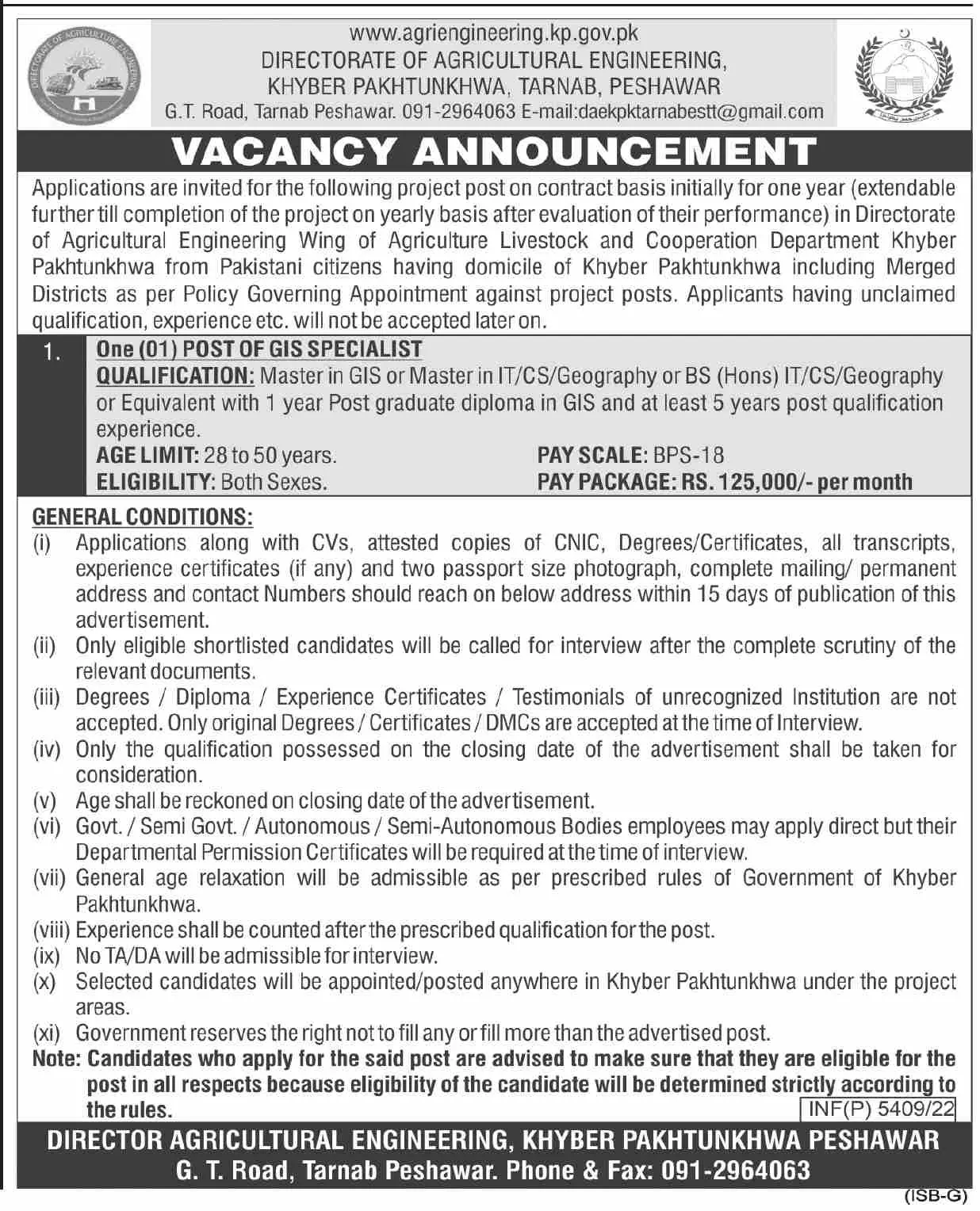 Director of Agriculture Engineering Peshawar Jobs 2022