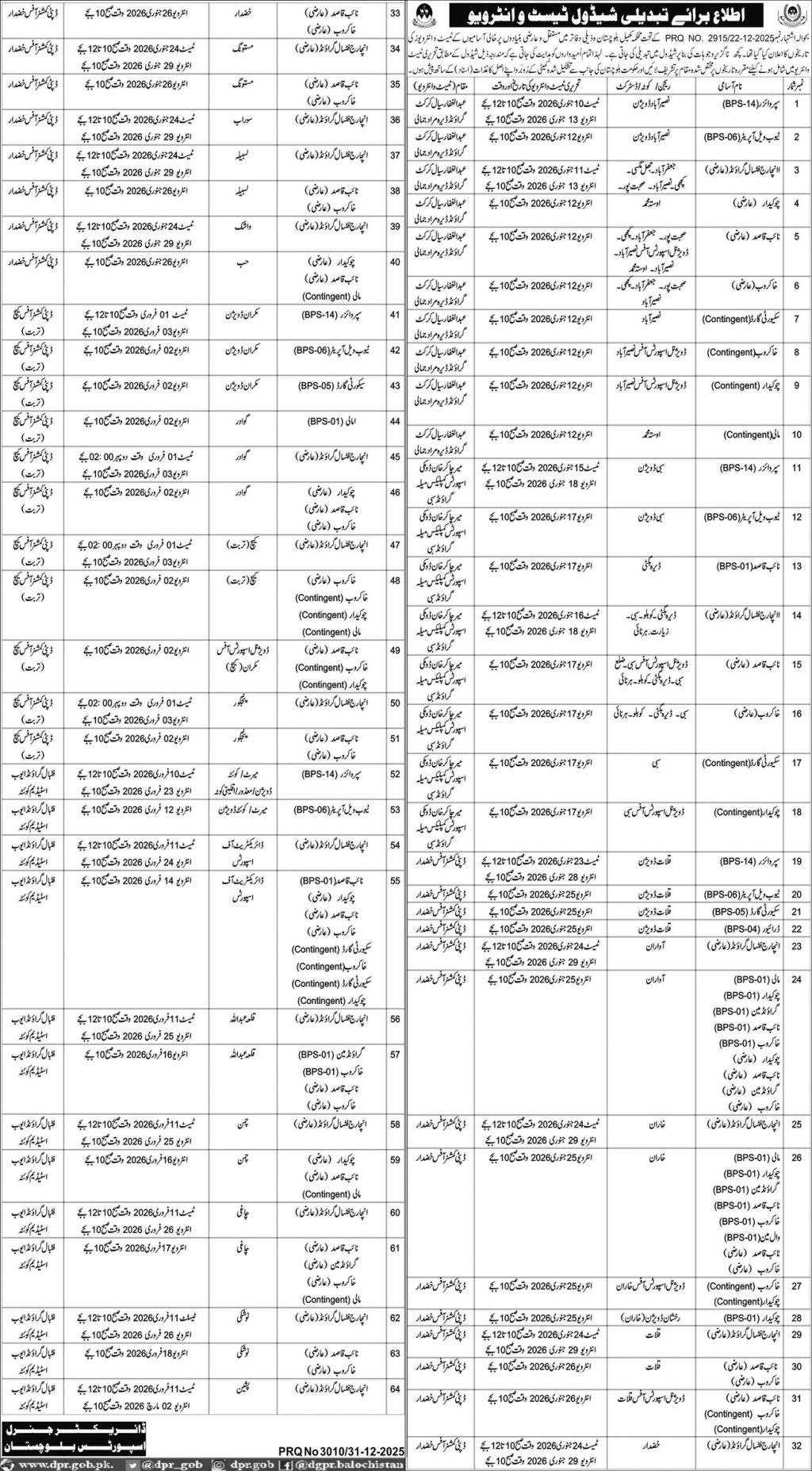 Directorate General Sports Balochistan Jobs Interview 2026 announce the Contract career opportunities for the post of See Below Ad in Balochistan, Quetta for the fresh and experienced candidates on Contract basis who have Check Advertisement degree. Posted date of this post is 01/01/2026 and the last date is 26/02/2026. if you are eligible for this job apply before due date.