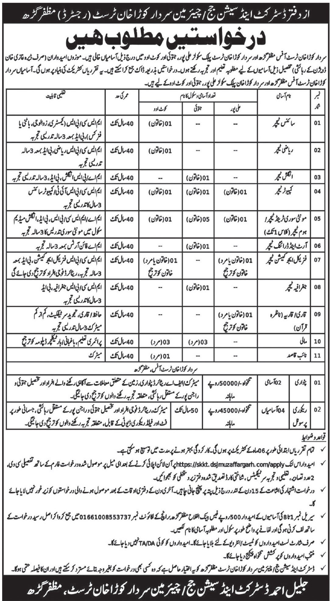 District and Session Judge Kot Adu Jobs 2026 announce the Contract career opportunities for the post of See Below Ad in Punjab, Kot Addu for the fresh and experienced candidates on Contract basis who have Check Advertisement degree. Posted date of this post is 28/03/2026 and the last date is 12/04/2026. if you are eligible for this job apply before due date.