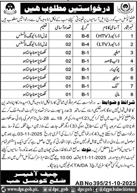 District Council Hub Jobs 2025 announce the Contract career opportunities for the post of See Below Ad in Balochistan, Hub for the fresh and experienced candidates on Contract basis who have Check Advertisement degree. Posted date of this post is 22/10/2025 and the last date is 06/11/2025. if you are eligible for this job apply before due date.