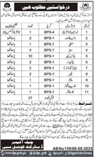 District Council Sibi Balochistan Jobs 2025 announce the Contract career opportunities for the post of See Below Ad in Balochistan, Sibi for the fresh and experienced candidates on Contract basis who have Check Advertisement degree. Posted date of this post is 09/08/2025 and the last date is 30/08/2025. if you are eligible for this job apply before due date.